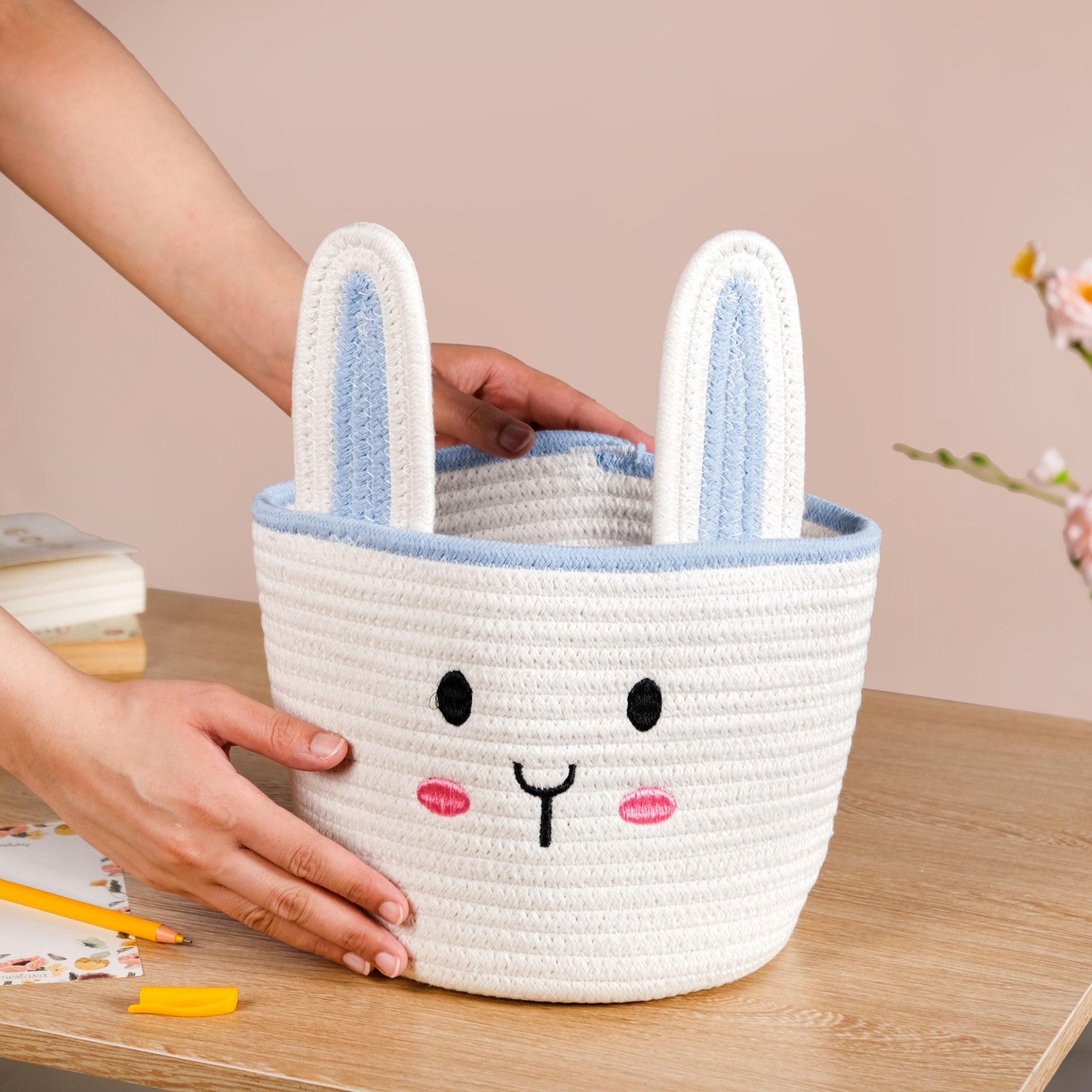 Keep your daily essentials neatly stored while adding a touch of quirk with this bunny-inspired storage basket set. Designed for both style and functionality, these baskets are perfect for organising small daily-use items in your entryway, child's bedroom, or vanity space. Whether for keeping keys, accessories, or cosmetics, these baskets ensure a clutter-free space with a playful charm.