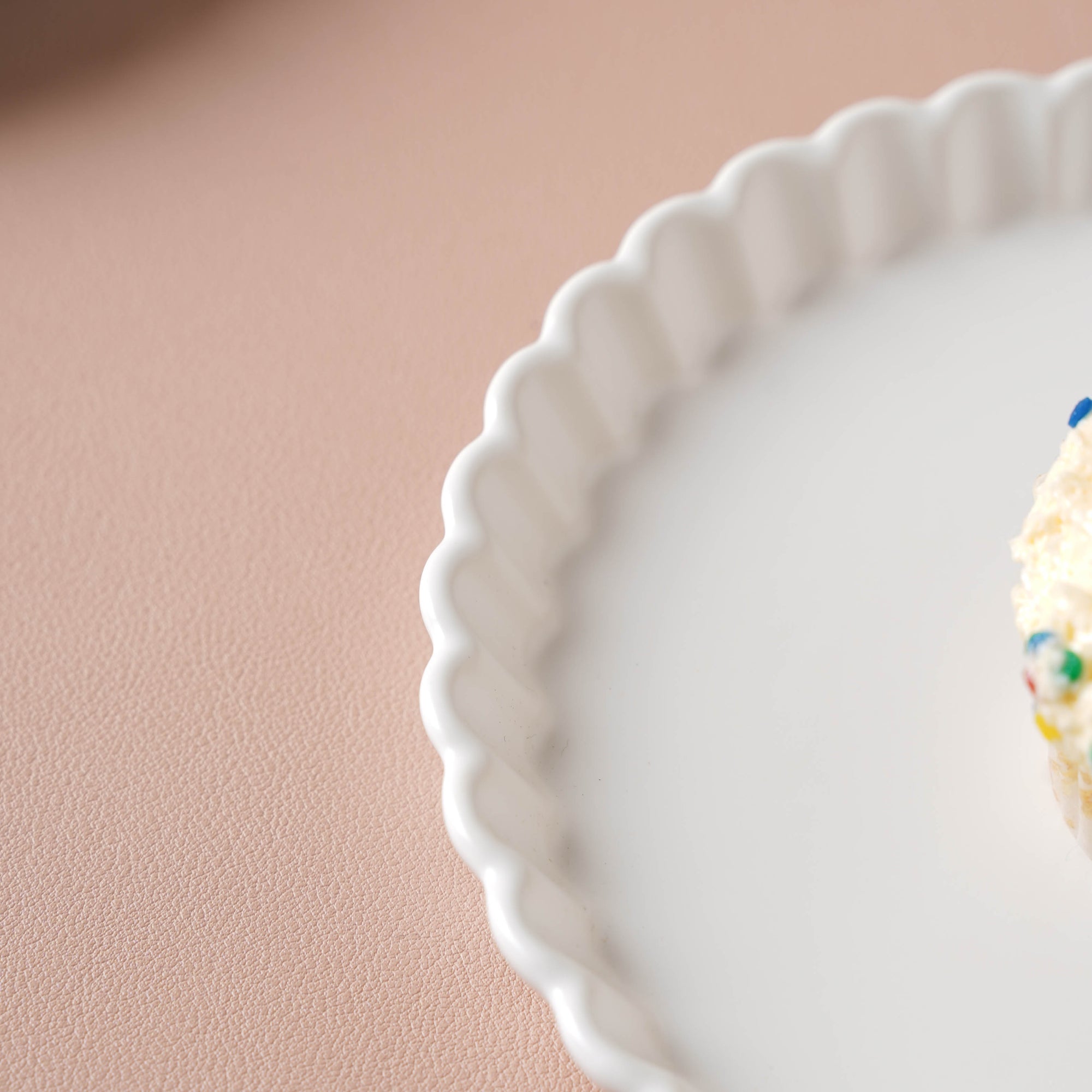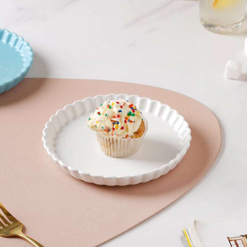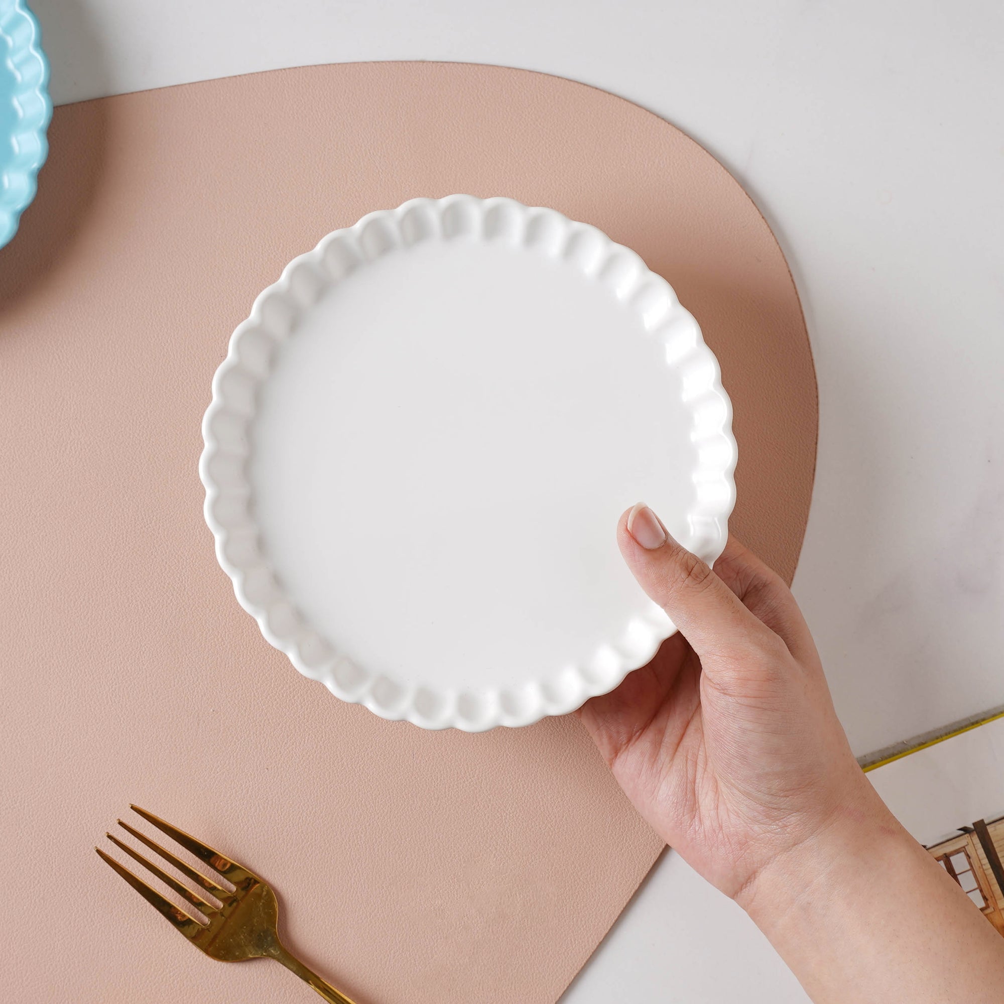 The soothing white snack plate with fluted edges is a simple yet striking ceramic plate that is suitable for any decor space. Serve snacks and cookies at a high-tea party on this ceramic plate. The raised rim creates a stylish aesthetic that lifts the appeal of any tablescape. Nestip: One can use it as a lunch plate or a dinner plate for kids. Size: 16cm D x 2cm H Color: White Material: Ceramic Products included: 1 plate Style: BRC88C55
