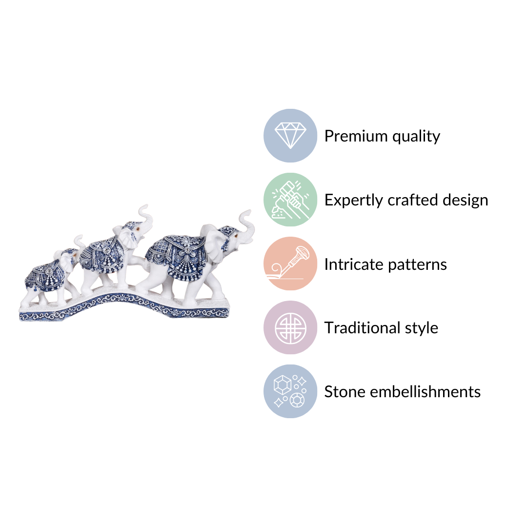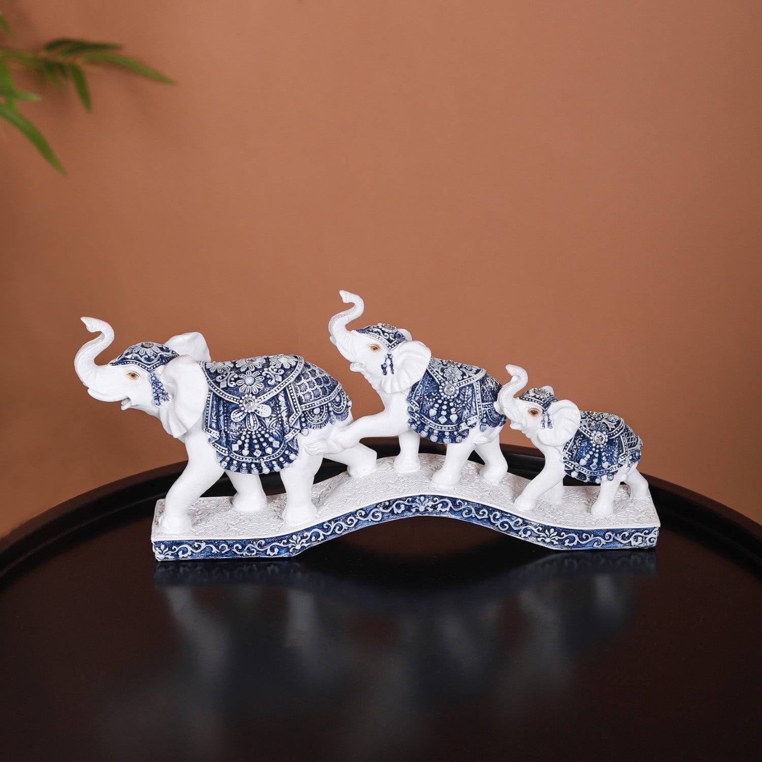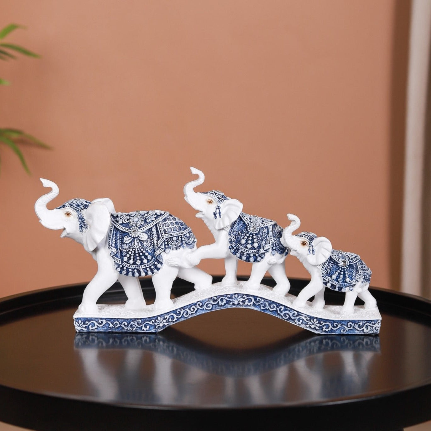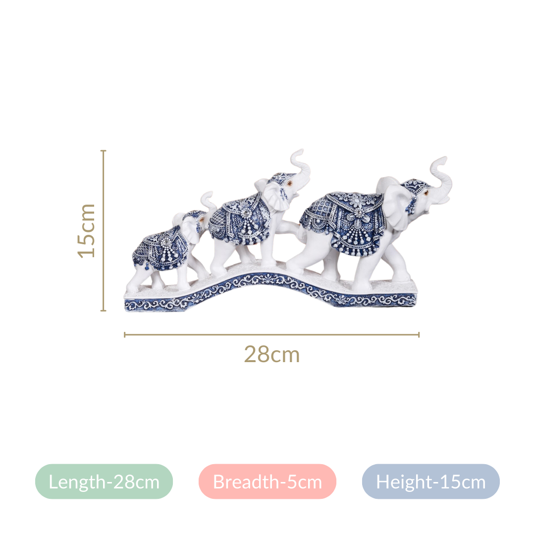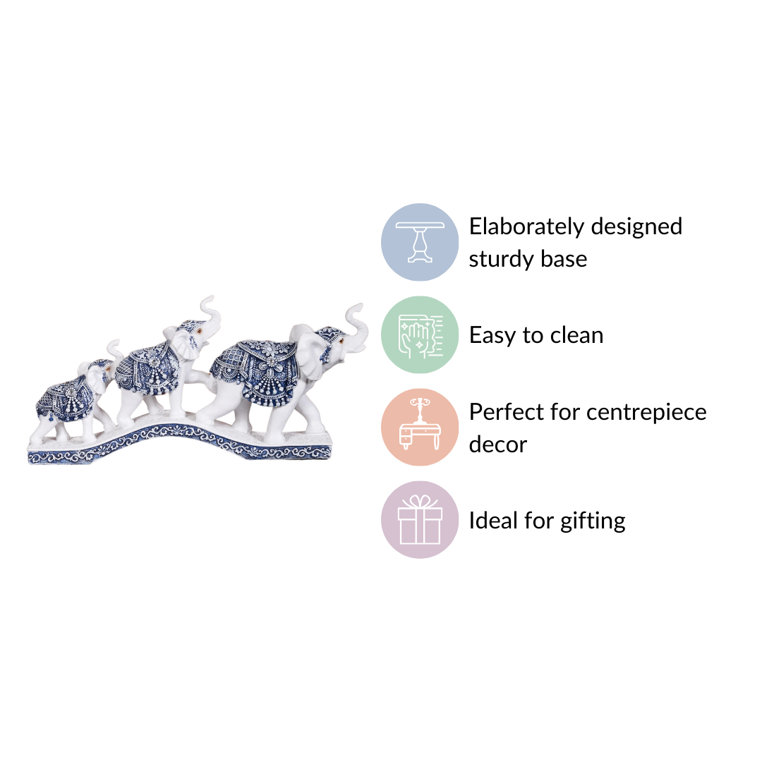 Certainly! The Elephant Family Showpiece makes for a thoughtful gift, symbolizing familial bonds and elegance. This showpiece has an amazing design and delicate blue features crafted intricately to add a touch of sophistication to this showpiece thus making it a meaningful choice for gifting for housewarmings, anniversaries, or any occasion where refined decor and sentimentality align.