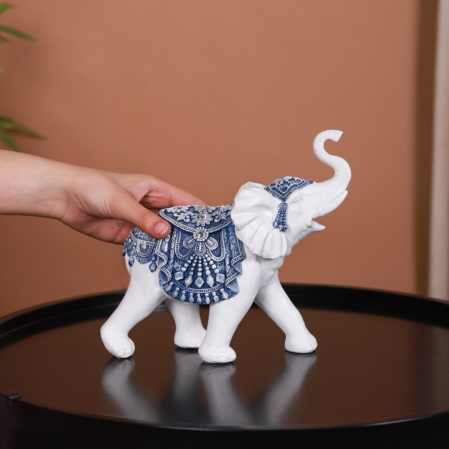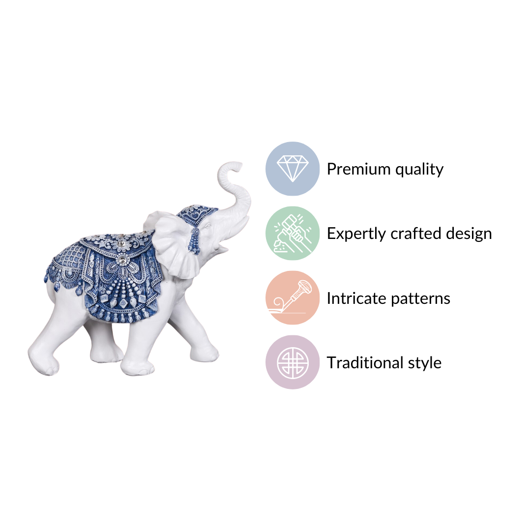 In various cultures, a white elephant is often considered a symbol of wisdom, good luck, and power. This figurine's portrayal captures these qualities, making it a meaningful addition to your decor. Moreover, the blue colour in the patterns of this showpiece also symbolizes serenity, stability, inspiration, or wisdom. It can be a calming colour, and symbolizes reliability.