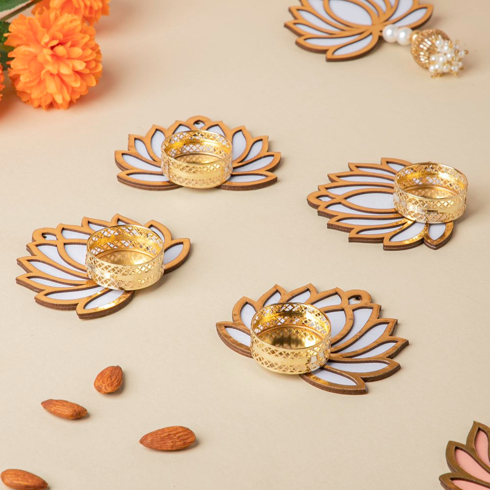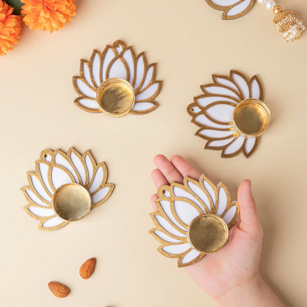 White Lotus Tea Light Holder Set Of 4
