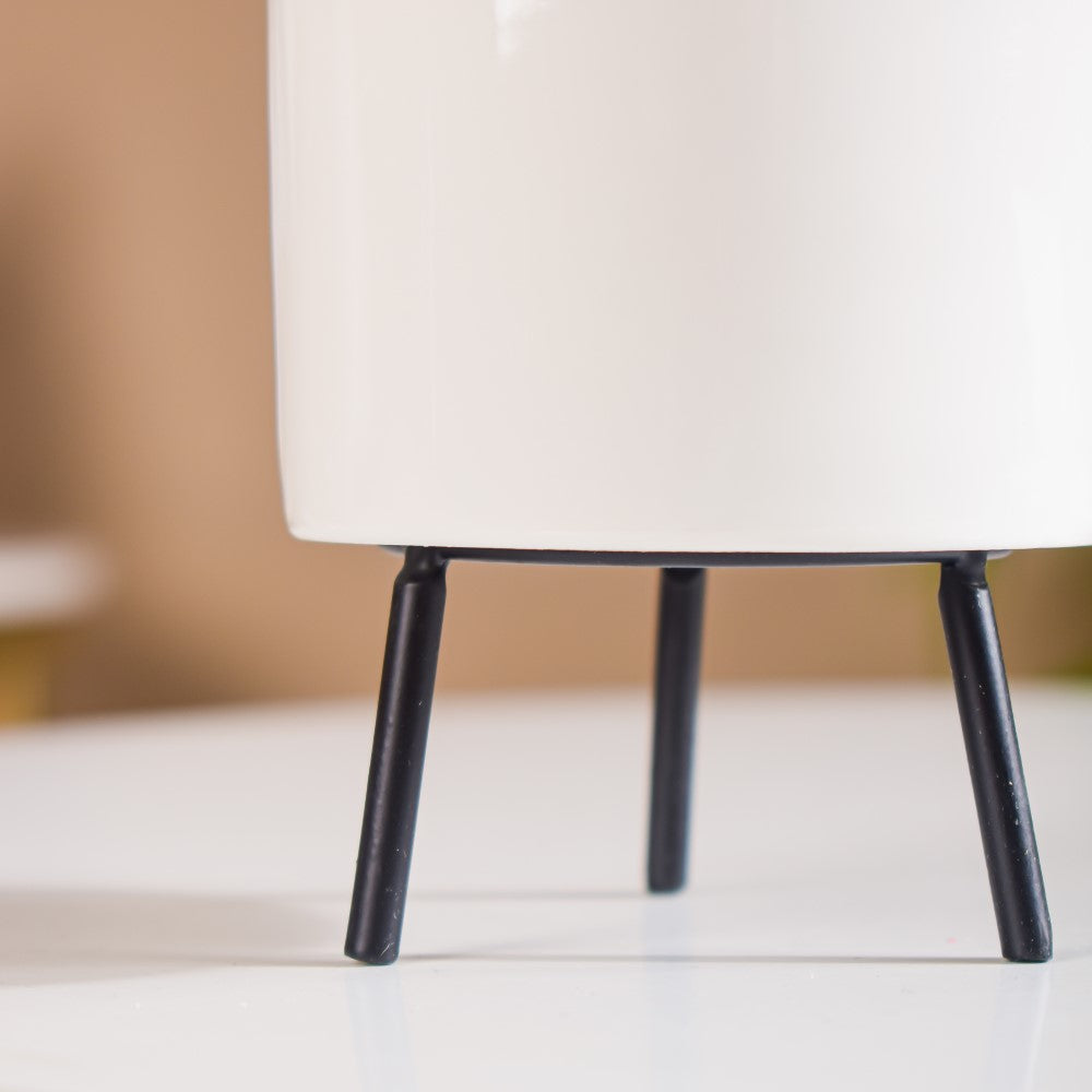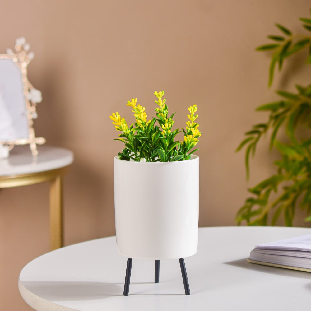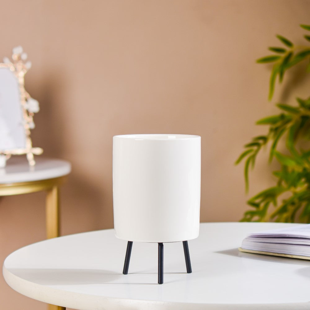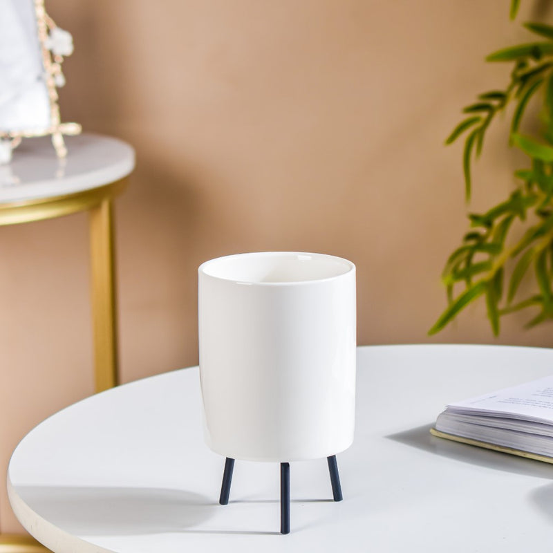 Nestip: The planter would make a pretty addition to a balcony garden! Size: With stand- 12cm H x 8cm D Color: White and black Material: Pot- Ceramic Stand- Metal Products Included: 1 ceramic planter with stand Style: LY20FCN227