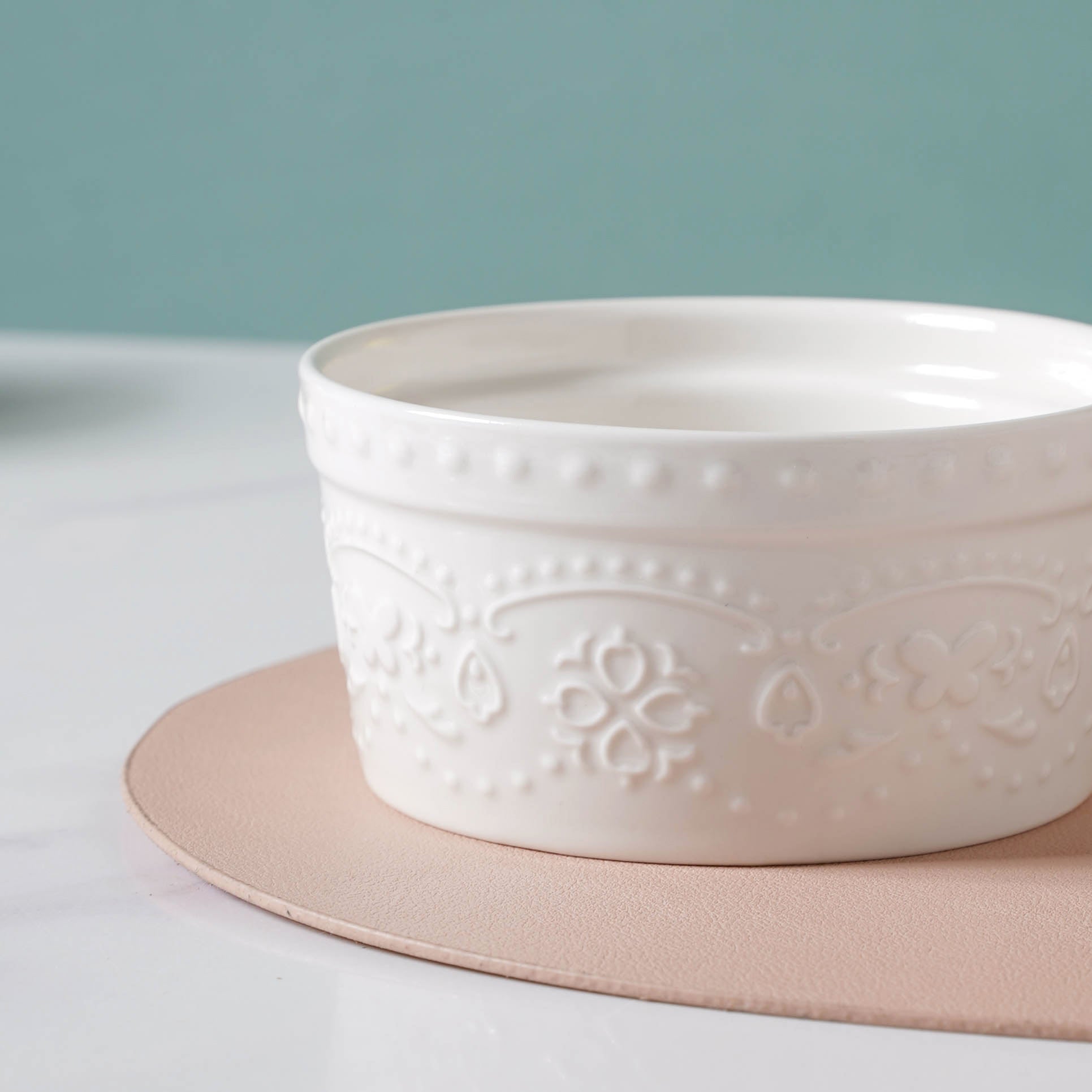 Nestip: Pair the white pudding bowl with white ceramic plates to complete the fine-dining look.
