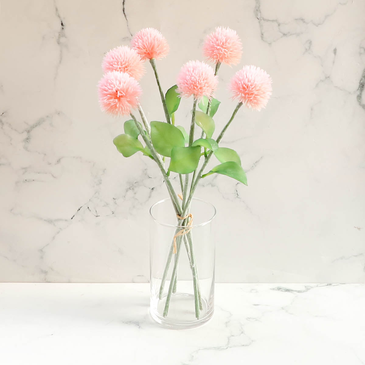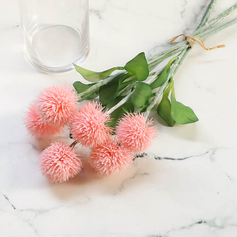 Wild flower is available as a set of 6 flowers with leaves attached on the stem. The leaves give them a natural look which remains fresh forever. The artificial flowers can be paired with white chrysanthemums or peonies for pink colour themed table decor styling. The flowers can be coupled with the pastel collection for an all girls brunch party. Colourful vases can be paired with the flowers to elevate the aesthetics of a dining table.