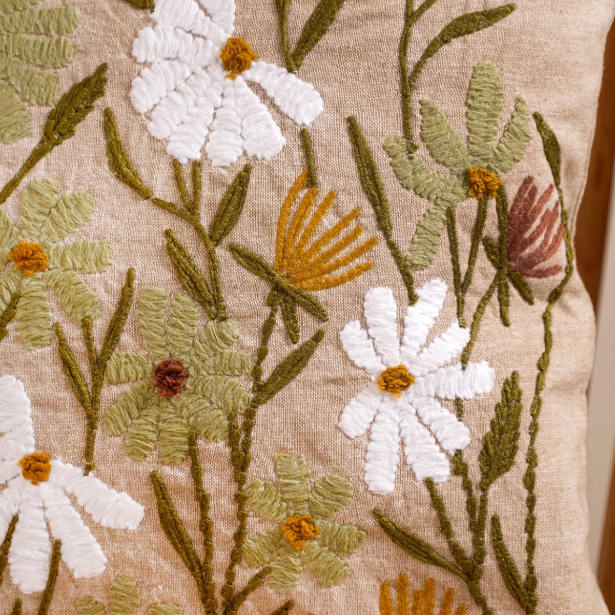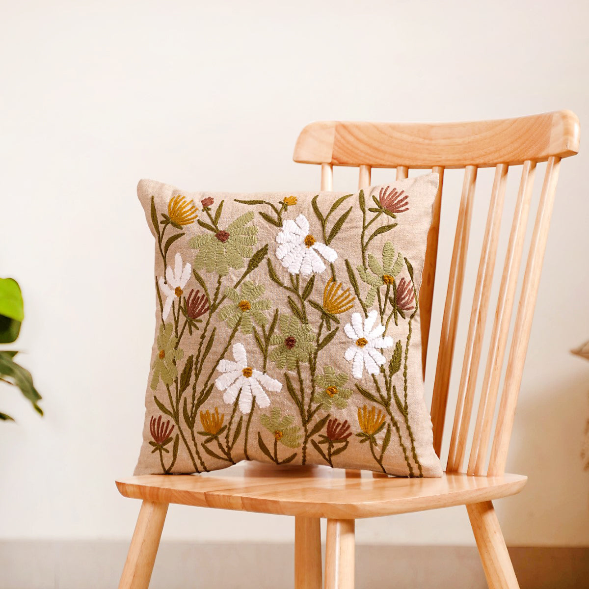 Yes, the cushion cover is compatible with various interior design styles. Its versatile design, featuring detailed floral embroidery on a luxurious cotton canvas, allows it to seamlessly integrate into different decor schemes.