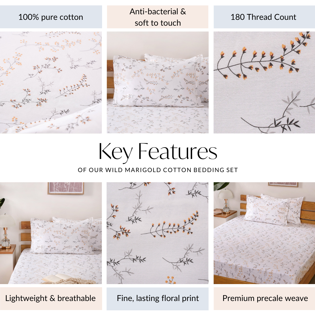 Wild Marigold 180 TC Pure Cotton Bedding Set Ultra Soft King Size 275x275 cm