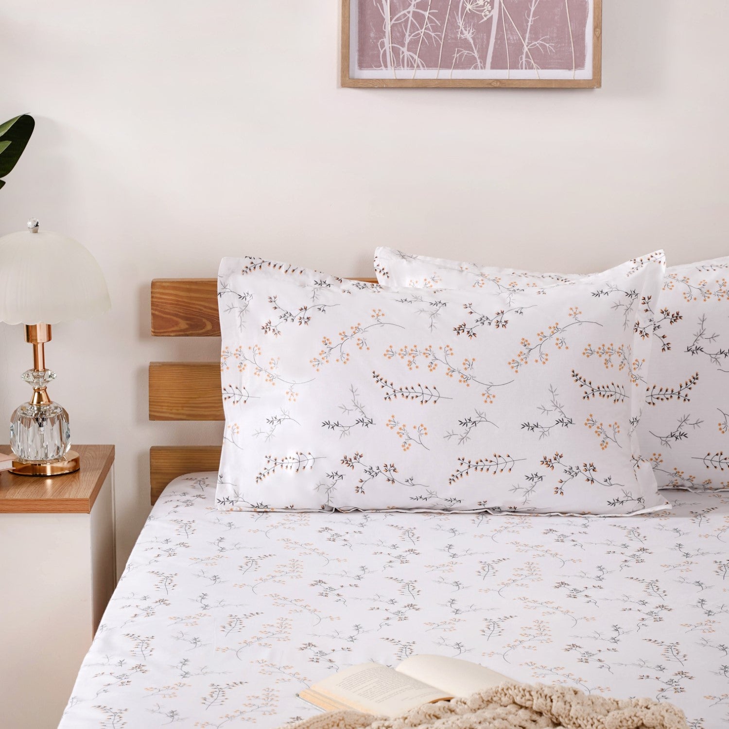 This bedsheet and pillowcase set is what sweet dreams are made of. With its soft, breathable cotton fabric and calming floral design, it offers the perfect balance of comfort and style.