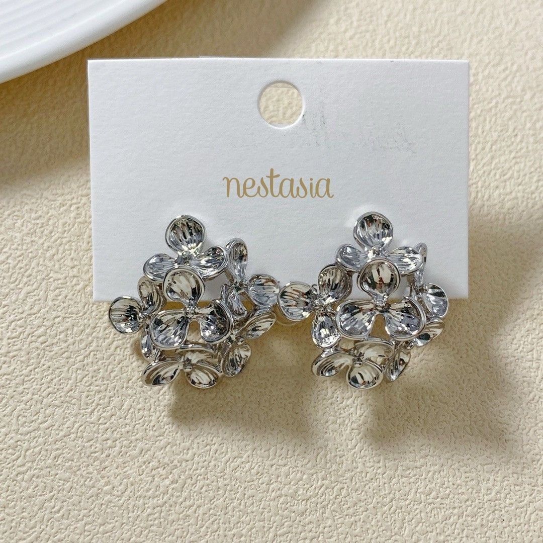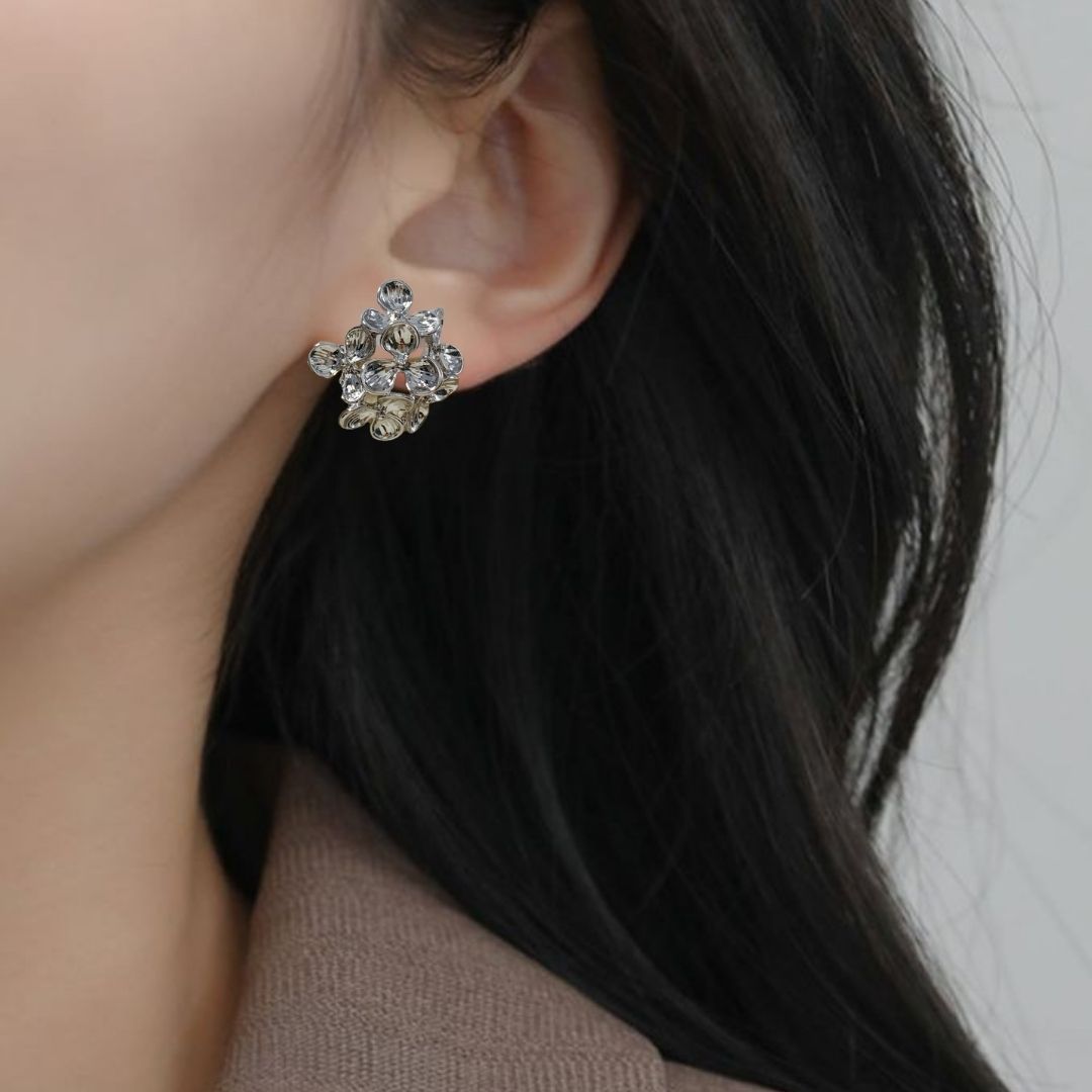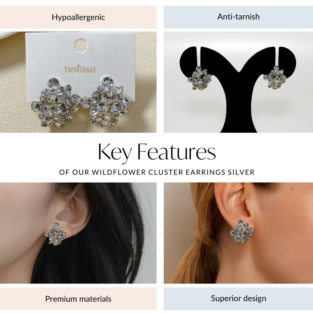 Provocatively eloquent and undeniably delicate, these cluster earrings bloom with the effortless beauty of wildflowers in their natural flourish. Inspired by nature in its wildest, most unrestrained form- flourishing effortlessly, untouched yet mesmerising- these earrings capture that raw elegance in sculpted silver tones. Each petal is intricately crafted to reflect the soft curves and organic charm of wild blossoms, creating a composition that feels both ethereal and timeless. A whisper of nature’s allure, designed to enchant with every wear.