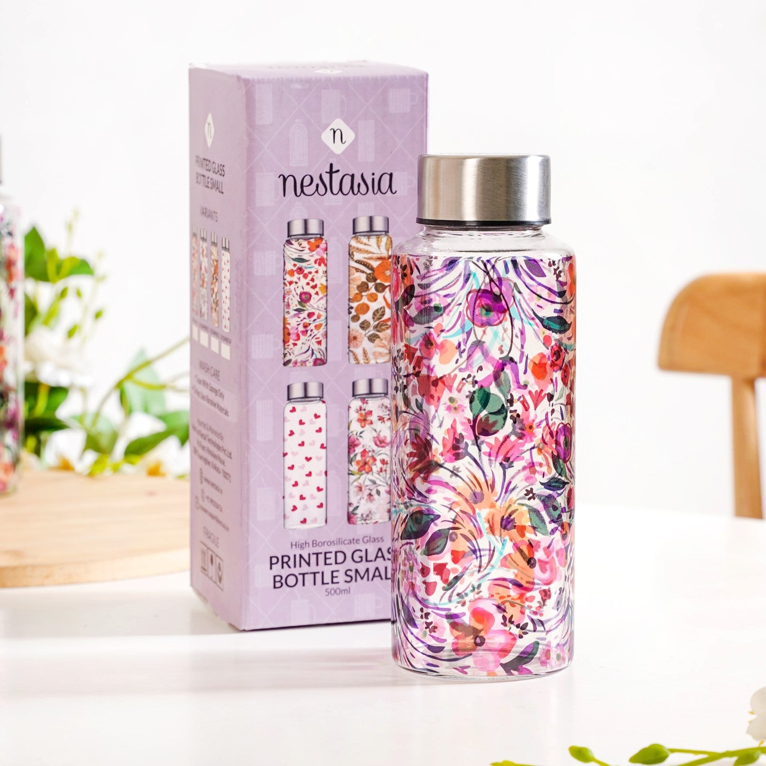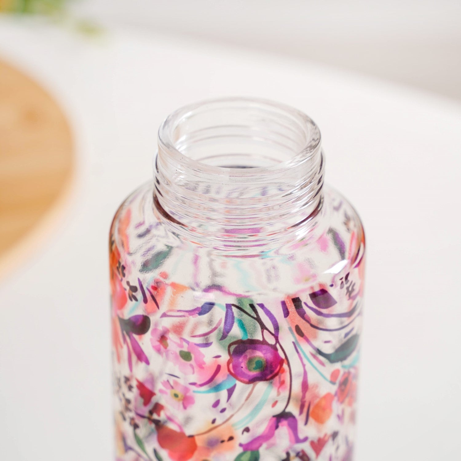 Design: Vibrant, playful, and eye-catching, this glass water bottle is all about adding a splash of colour to your day. Covered in a stunning digital print of multicolored wildflowers, it’s a beautiful blend of nature and art that transforms a simple bottle into a cheerful accessory. The design flows seamlessly around the glass bottle, making it a striking, one-of-a-kind piece that stands out wherever you go.