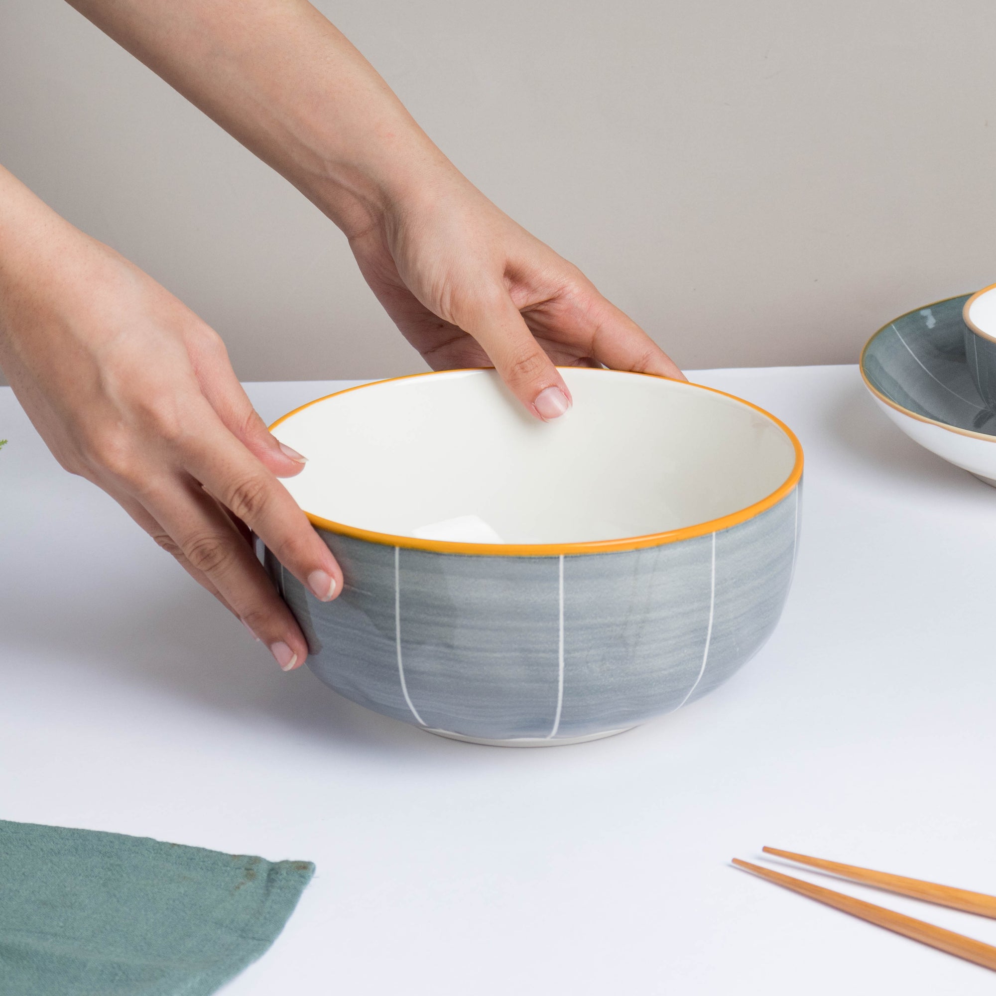 If the weekends are reserved for brunch and munch, there’s a high chance the Willow dark grey dinner set is going to be a favorite in the bolt of lightning. An assortment of 6 dinner plates, 6 snack plates, 6 soup bowls, 2 serving bowls, 1 long plate, and 1 baking plate is exclusively made for showcasing homemade nibbles, the cuisiner’s chef d'oeuvre. Invite friends and family over and enjoy a sumptuous meal as you lay the Willow dinnerware set on your table.