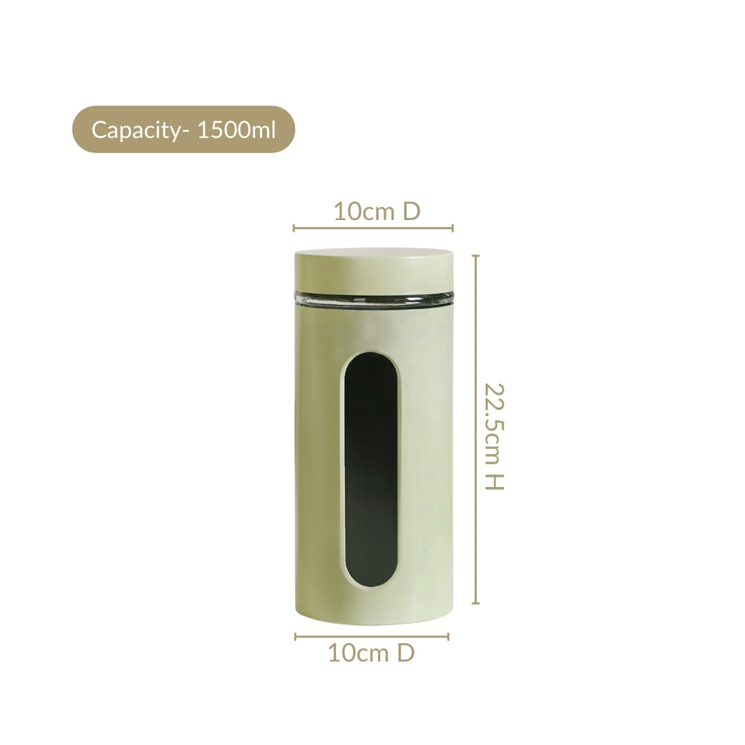 Canister: 10cm D x 22.5cm H; Capacity: 1500ml