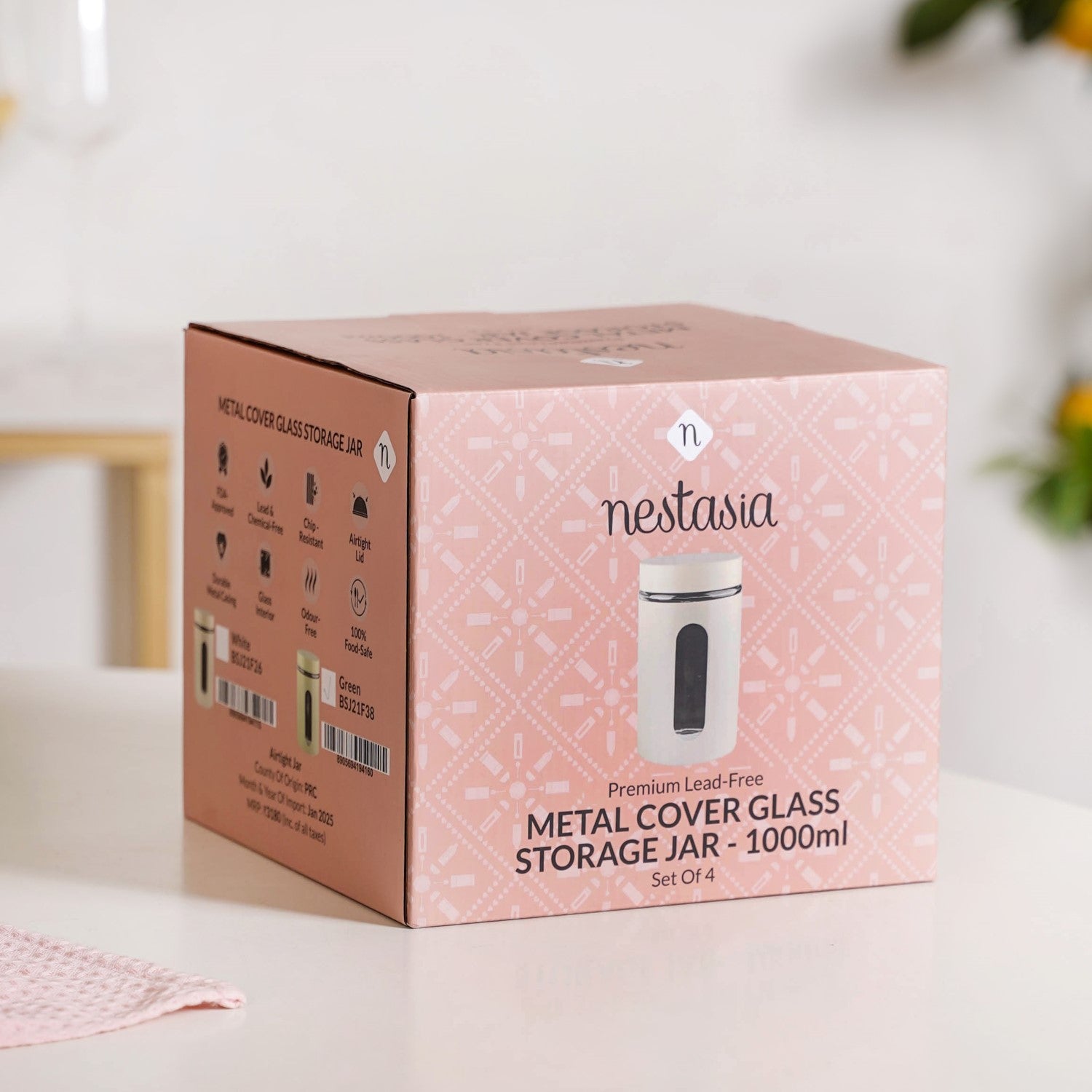 Winnie Set Of 4 Metal Cover Glass Canister With Window 1000ml