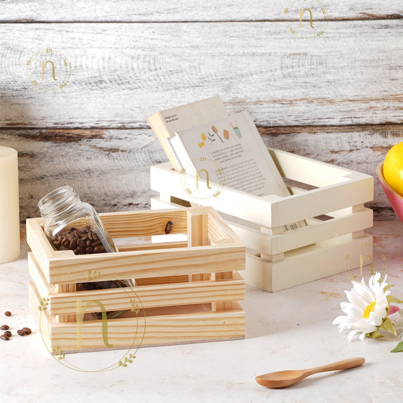 The small wooden crate is multifunctional and is a very handy item to have at any place, be it a house or a shop. From vegetables to fruits to clothes, the wooden storage box can hold everything. Moreover, it can be used to stack small plates or cups, cutlery etc. The wooden box for storage or basket is made out of good quality wood and is long lasting and sturdy. There are 2 soothing colours to choose from.