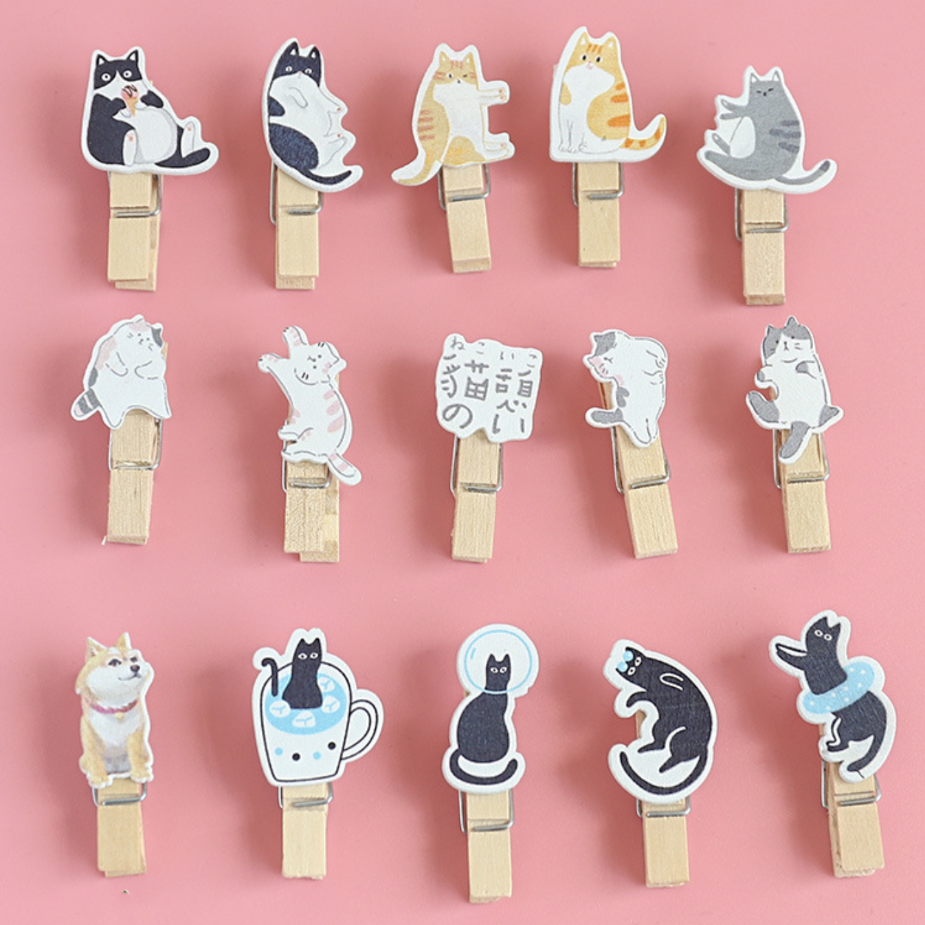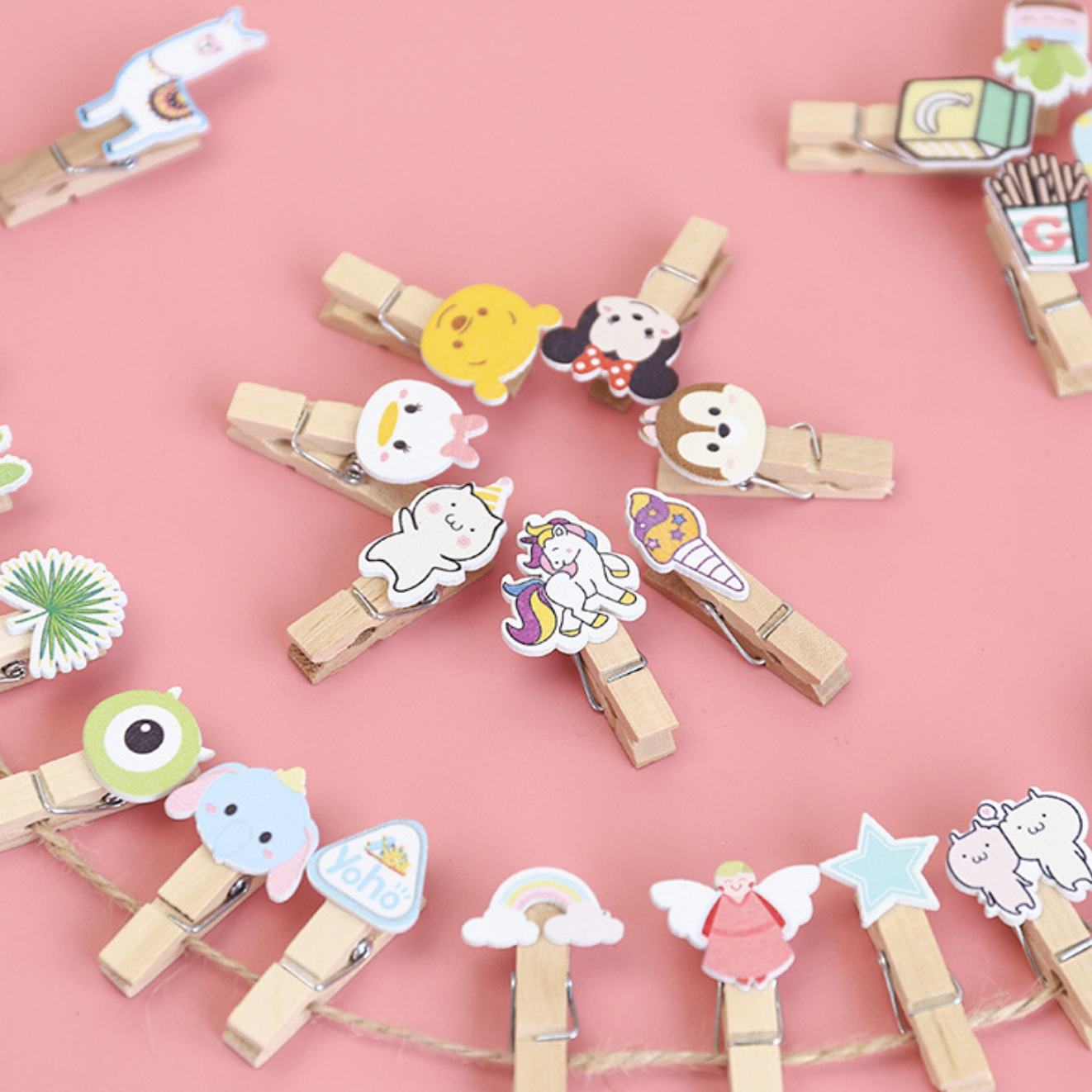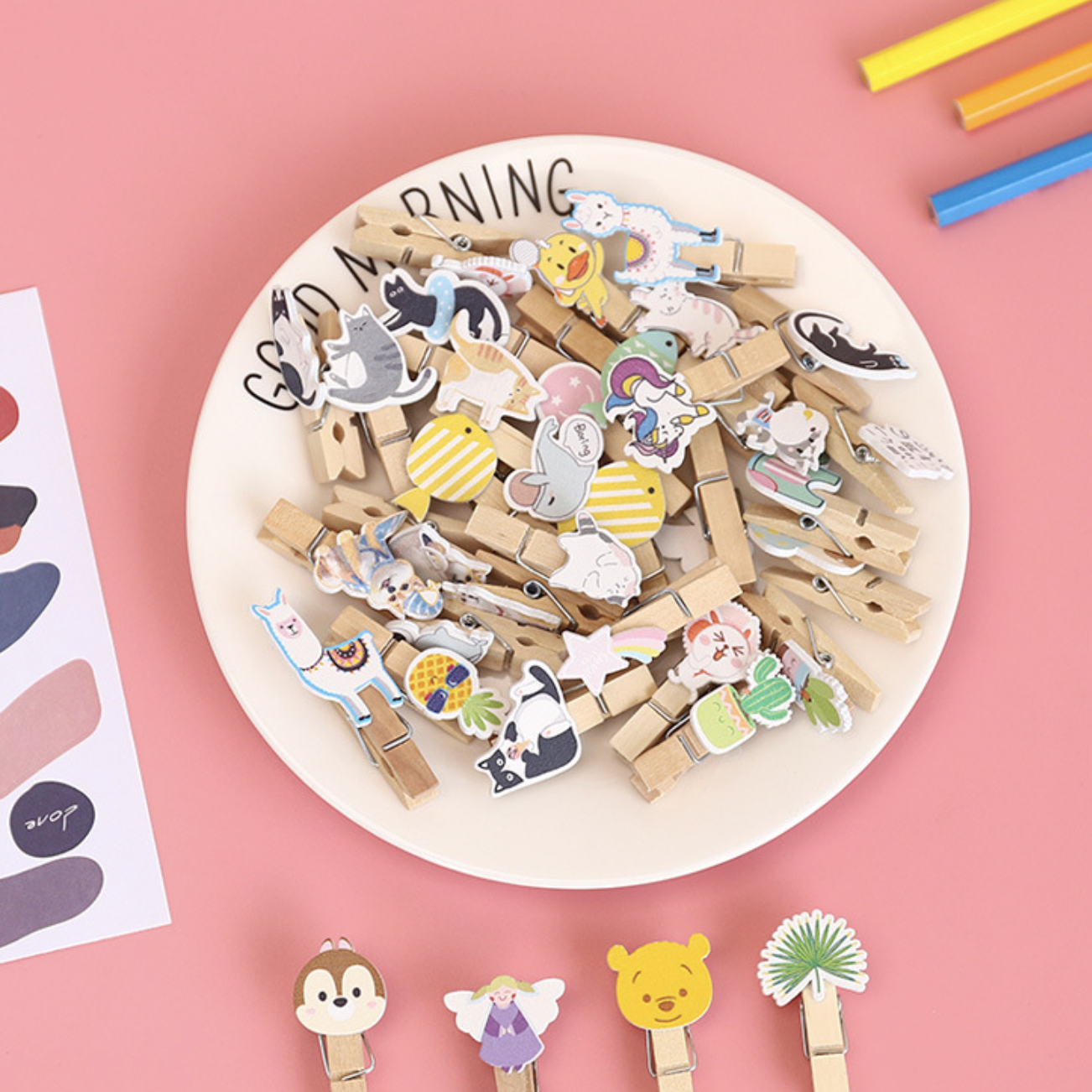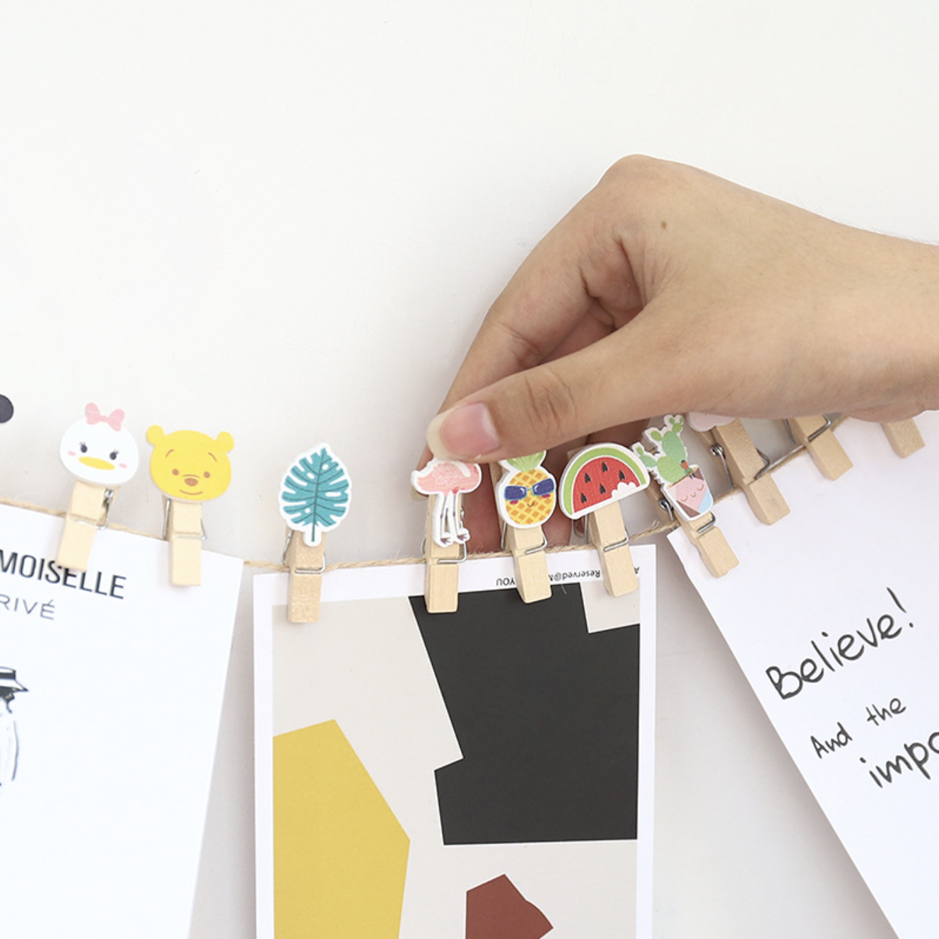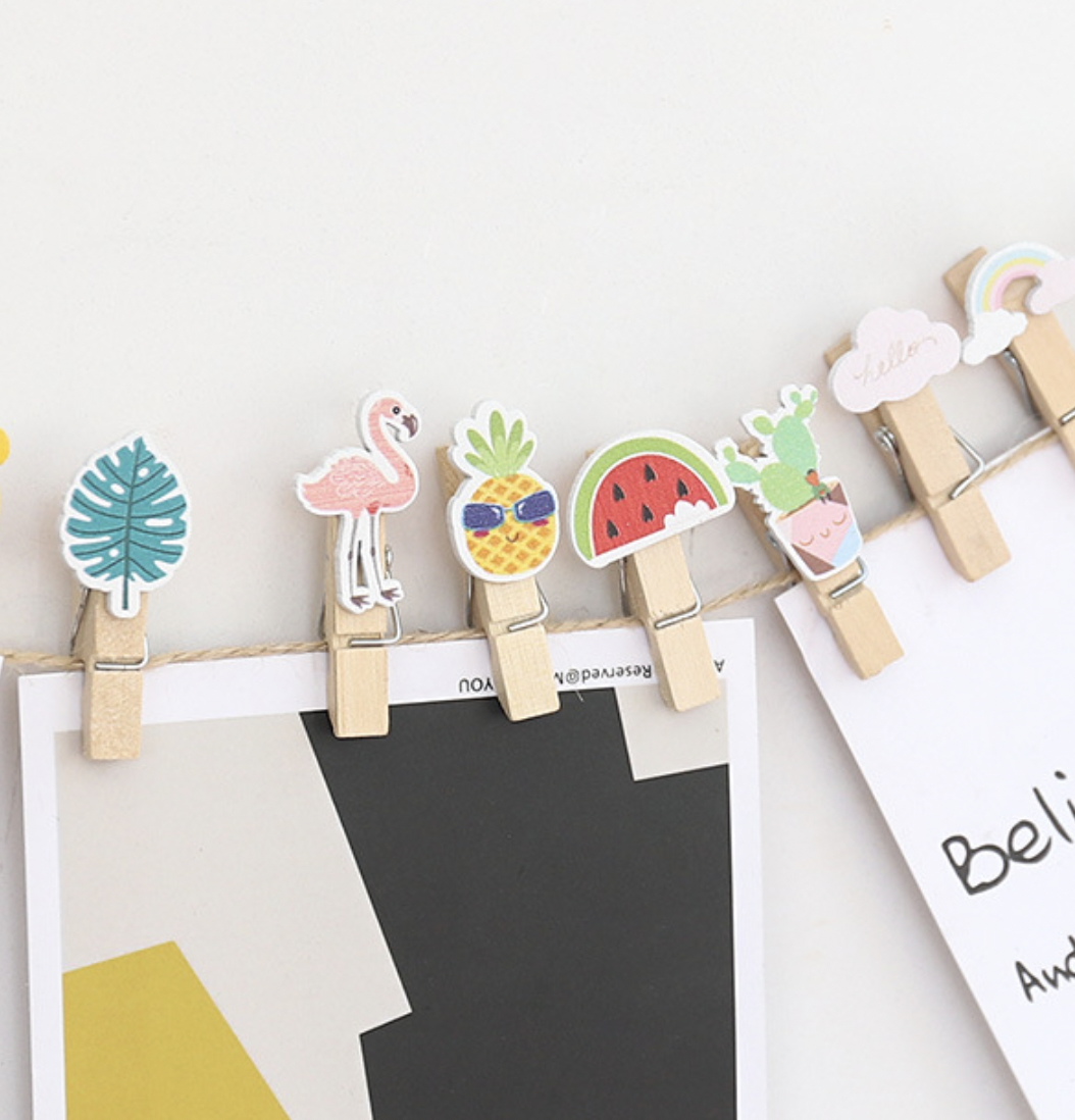 A set of 10 decorative wooden paper clips with adorable designs on the top. The charming set of stationery may be used to hang papers or hung on a thread to hold favourite polaroid photographs with loved ones or from vacations. These adorable clips are a must-have for building an artistic memory wall. There are multiple variations to choose from - all equally adorable designs - from cats to food and more.