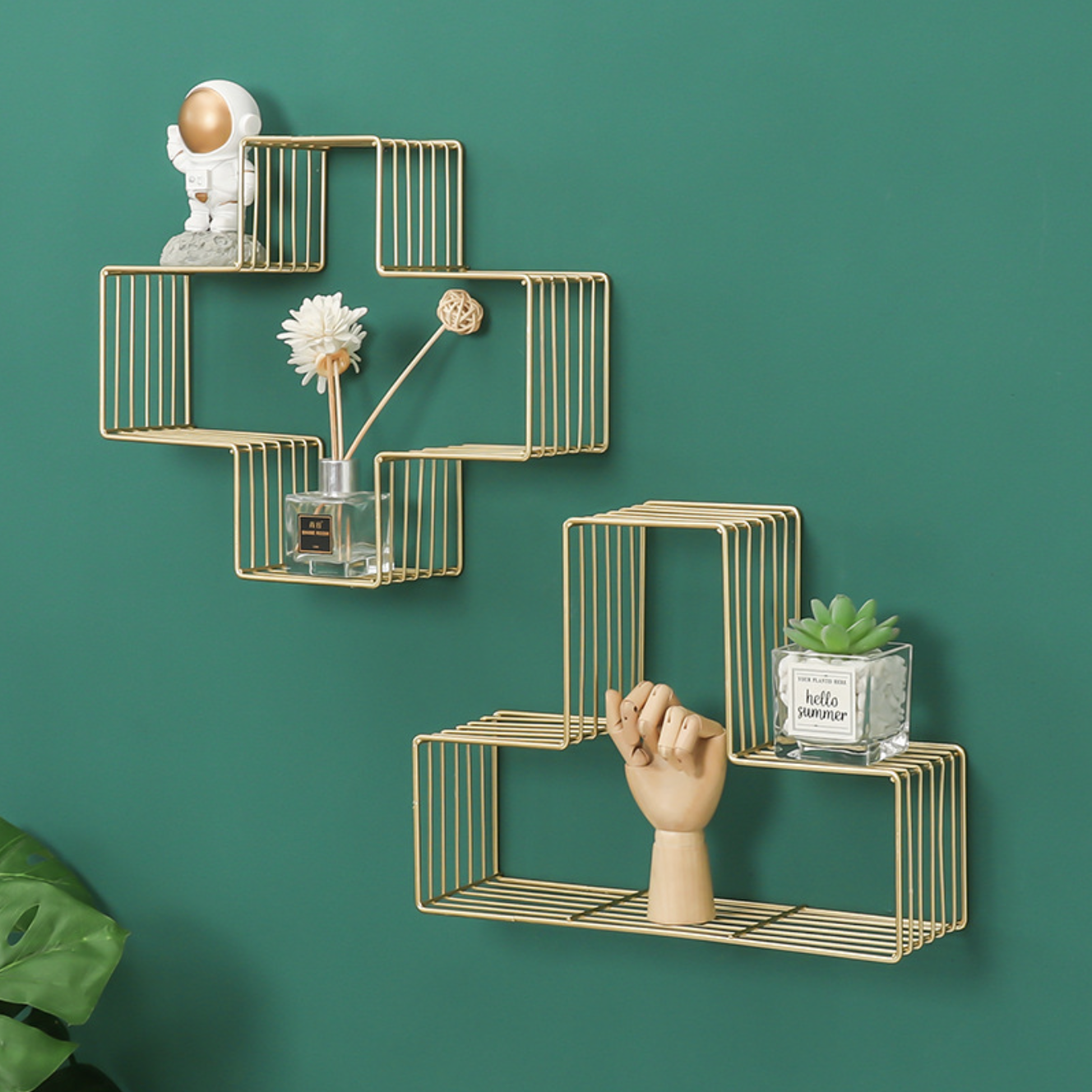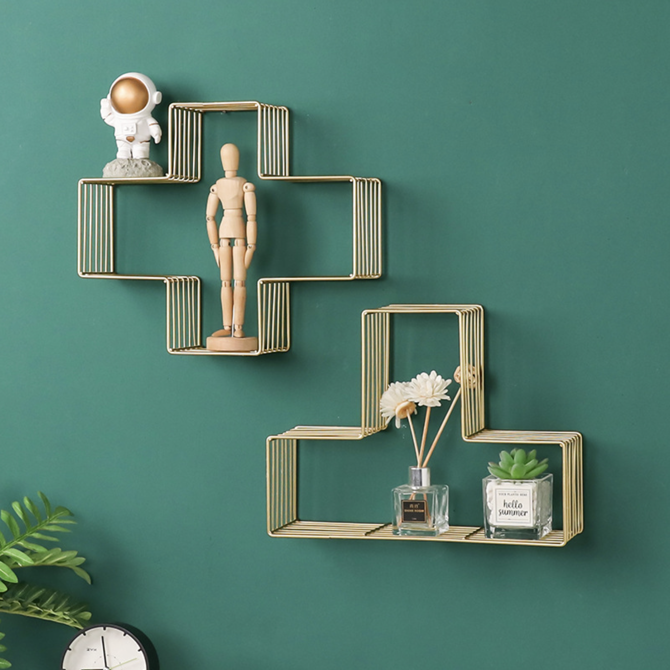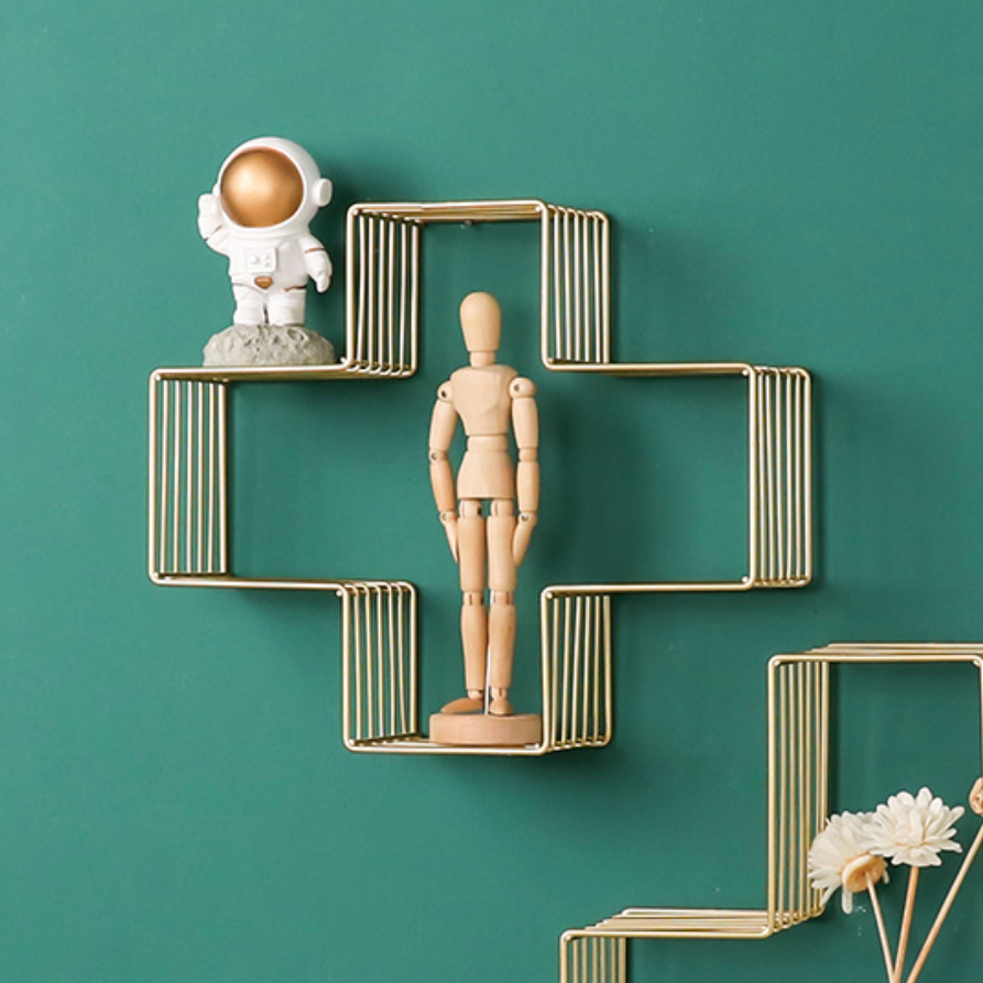 Decorative hanging shelves in a striking golden color to jazz up the walls of the bedroom or the living room. The hanging wall rack is available in 2 styles - a plus shape and a reverse T - both very quirky shapes. Place showpieces, planters, photographs or vases on the wooden shelves which are quite sturdy and durable and give your walls a fun decor spin.