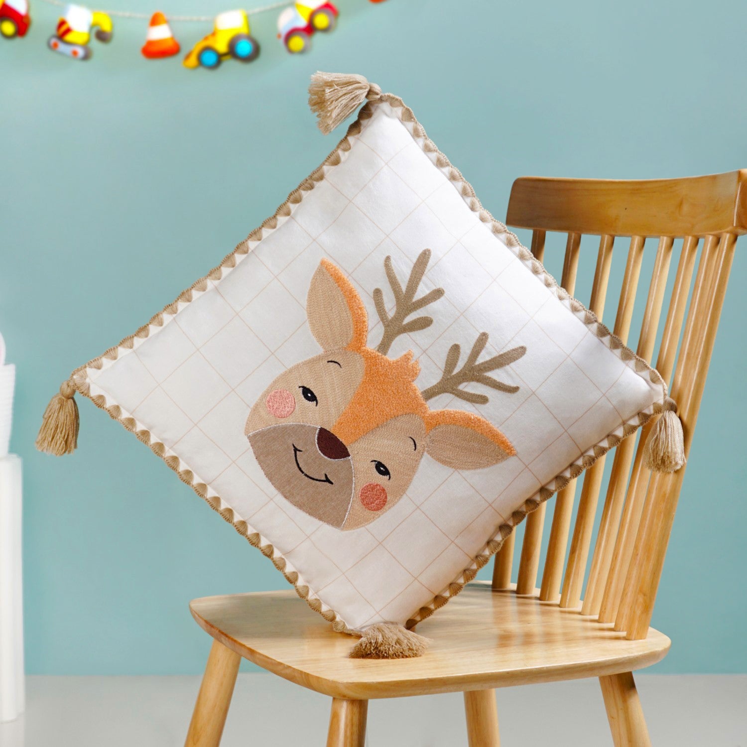 Woodland Deer Embroidered Cotton Kids Cushion Cover 42x42cm