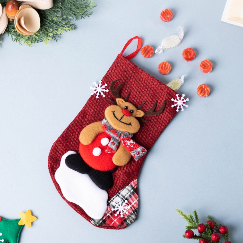 The stocking stuffer with Christmassy weavings can be used as a hanging decor item on the Christmas Eve to hang from the fireplace, mantle, entryway, or windowsill. The large size of the sock allows for more stocking stuffers, such as chocolates and toys. The soft, skillfully embroidered linen sock is a must-have Christmas decoration that also serves as a decorative accent. The adorable Christmas embossing on the polyester stocking adds to its charm.