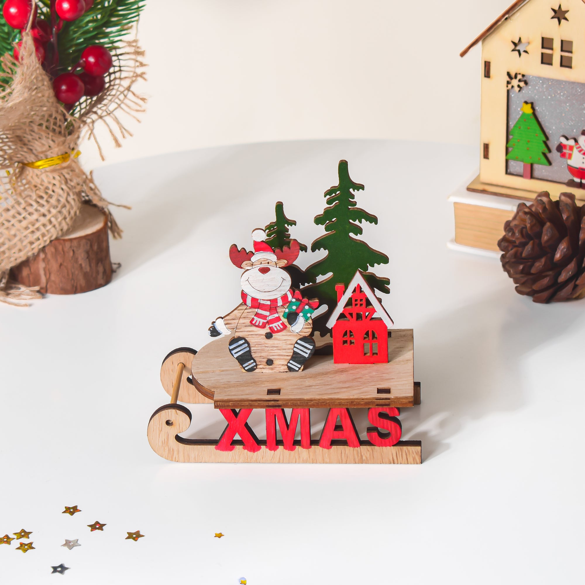 Xmas DIY Wooden Reindeer Sleigh Decor