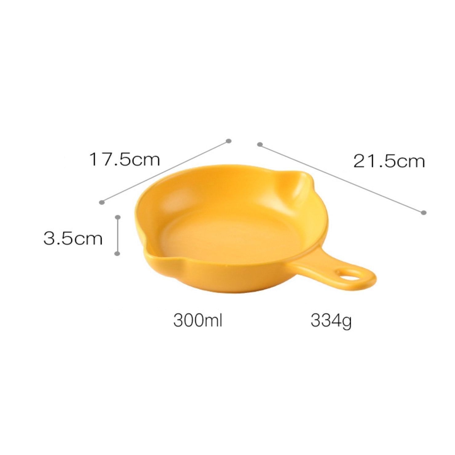 Adorned with a yellow hue, the ceramic dish with handle may be used for baking or serving. The circular baking plates with handles feature spouts on both sides, giving them a sophisticated appearance. The baking plates may be used to bake pastries such as cinnamon buns or pie, as well as appetizers such as creamy potatoes and vegetables, nachos, quiche, and, baked spaghetti and noodles. The snack plates are stackable and can also be hung on a hanger, making them easy to clean and store.