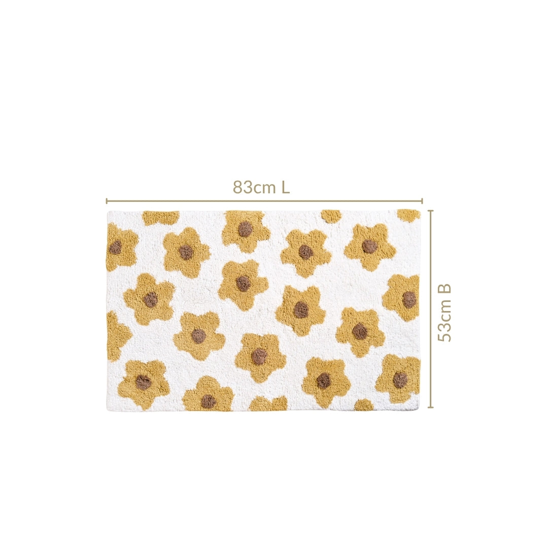 Anti Slip Cotton Yellow Daisy Mat 83x53cm