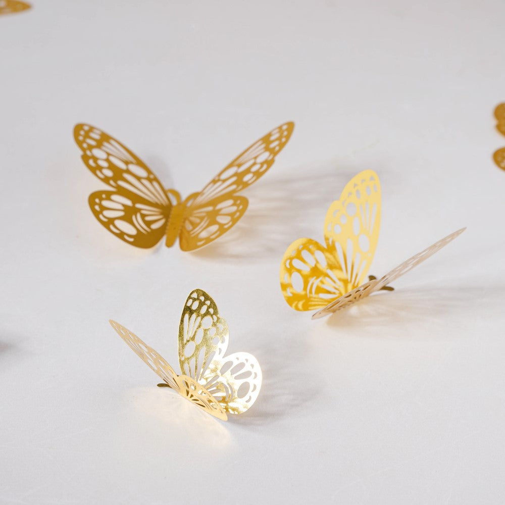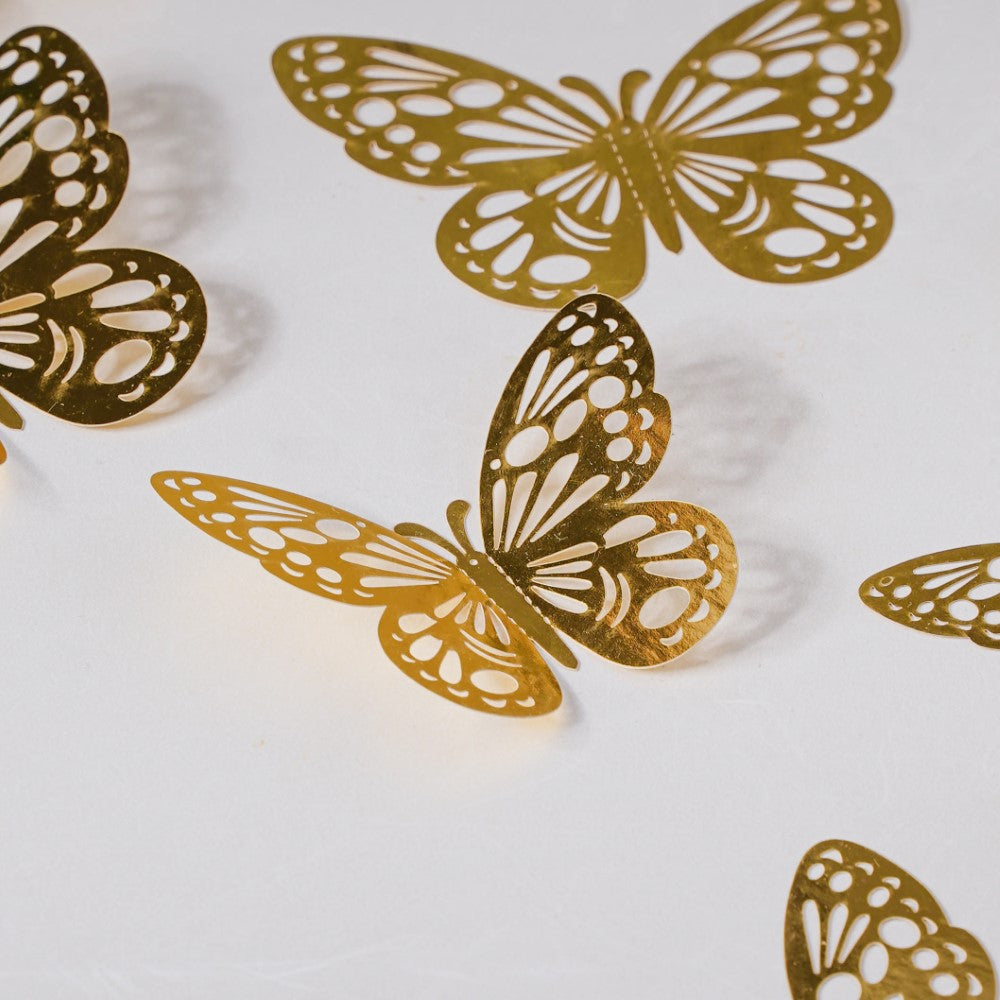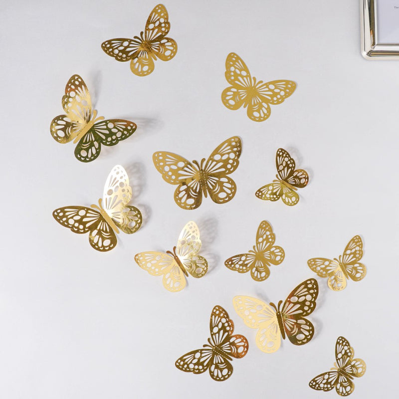 Products included: 1 set of 12 butterflies (4 small, 4 medium, and 4 large) along with glue stickers