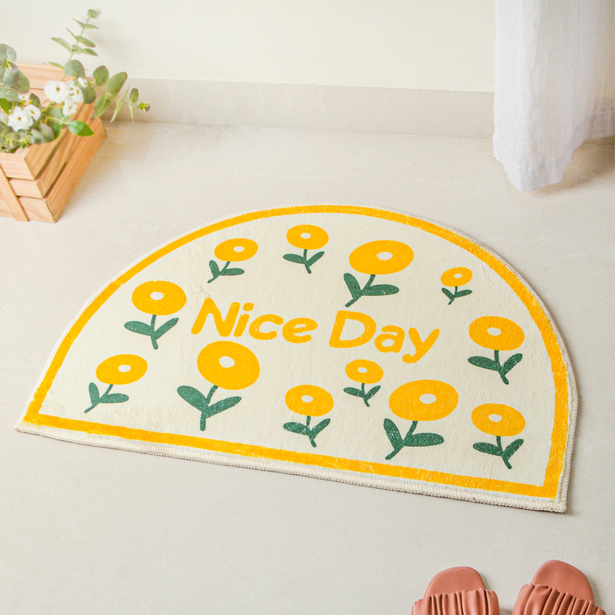 opt for this large semicircle rug in yellow with white flowers for a pleasant and lively ambiance in the living room. Keep the yellow rug at the foot of the bed to keep the feet warm. This half-circle mat will also quickly brighten the space where it is kept. The mat can be cleaned by both machine-wash and handwash, although handwash is recommended for longer durability.