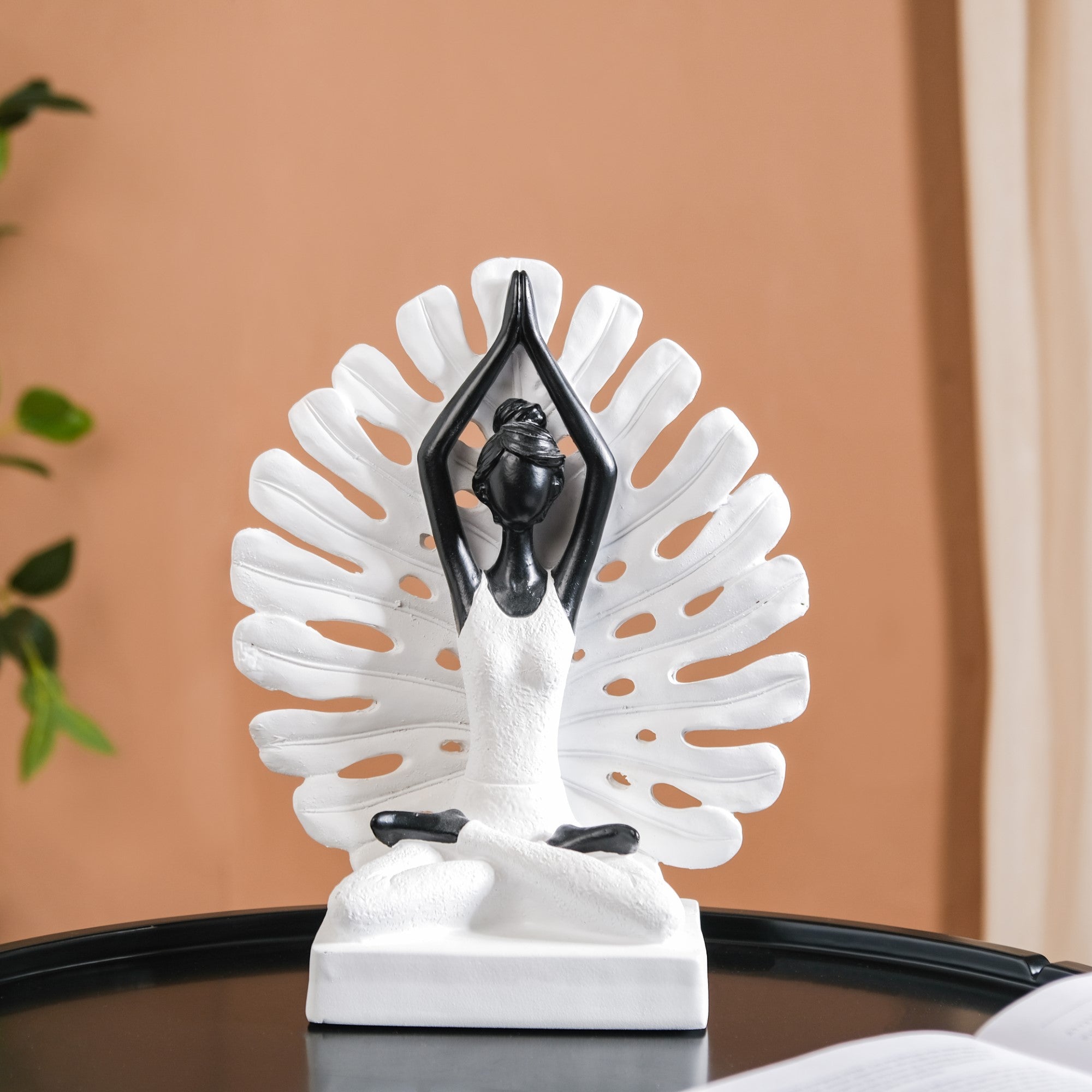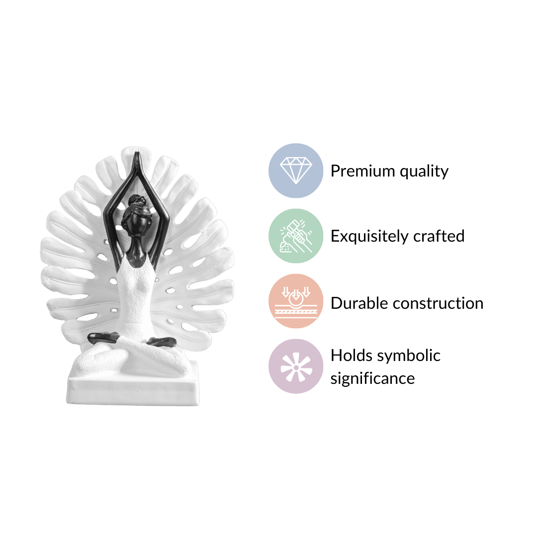 With our magnificent Yoga Lotus Position Sculpture, you can completely envelop your living area in a world of grace and peace. This exquisite decor showpiece which was meticulously created with utmost precision and attention to detail, perfectly captures the serenity of a woman in Padmasana, the lotus position, with her hands making the Namaskara mudra above her head. This sculpture can be used as an eye-catching centrepiece in your home and is also an excellent option for gifting. With this gorgeous manifestation of harmony and beauty, welcome the calming energy of yoga into your surroundings.