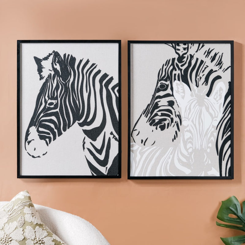 Inspired by the raw and untamed beauty of the wilderness, the art pieces feature zebras in their natural habitat. To create a visually cohesive look, you can explore Nestasia's collection of animal showpieces and vibrant soft furnishings.