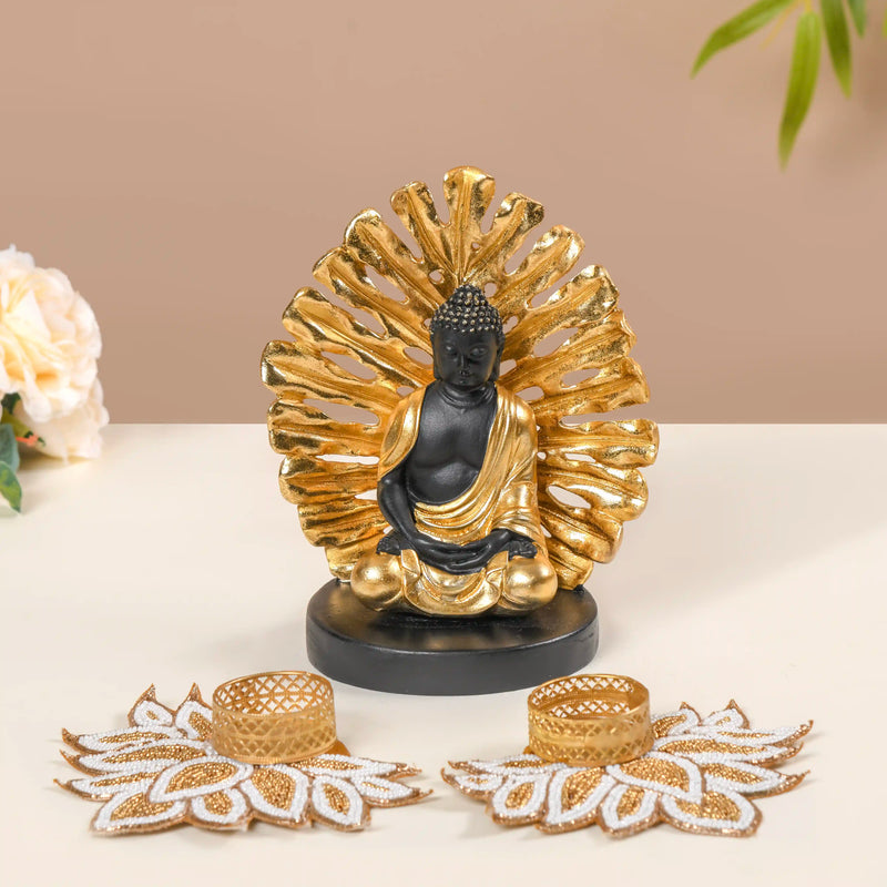 The black Buddha statue, captured in a serene meditative pose, embodies profound symbolism. It symbolizes the virtues of tranquility, inviting mindfulness and inner peace into one's space. Beyond its aesthetic appeal, this statue serves as a spiritual icon, signifying the journey towards enlightenment and deep introspection.
