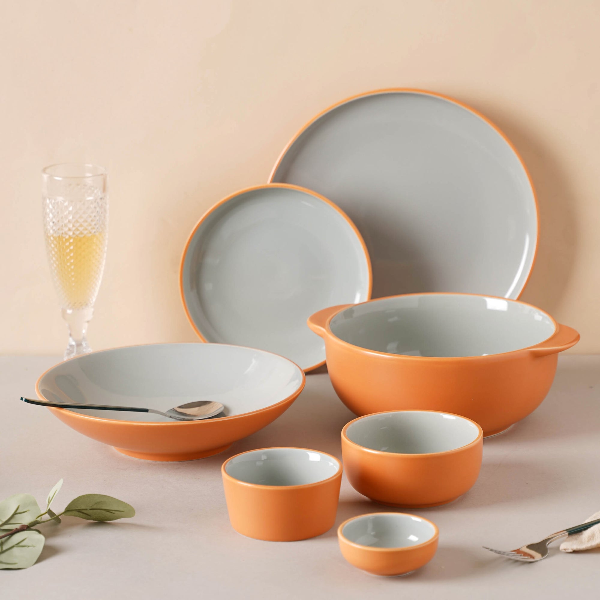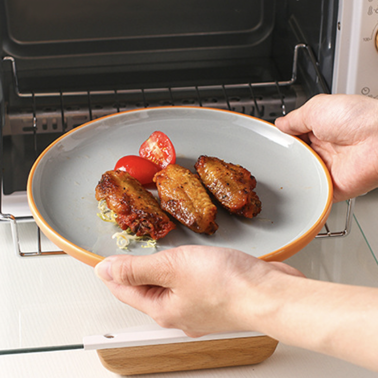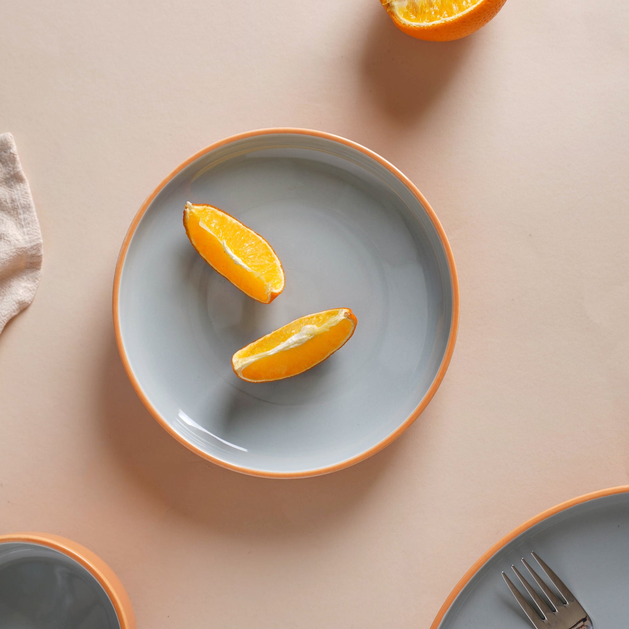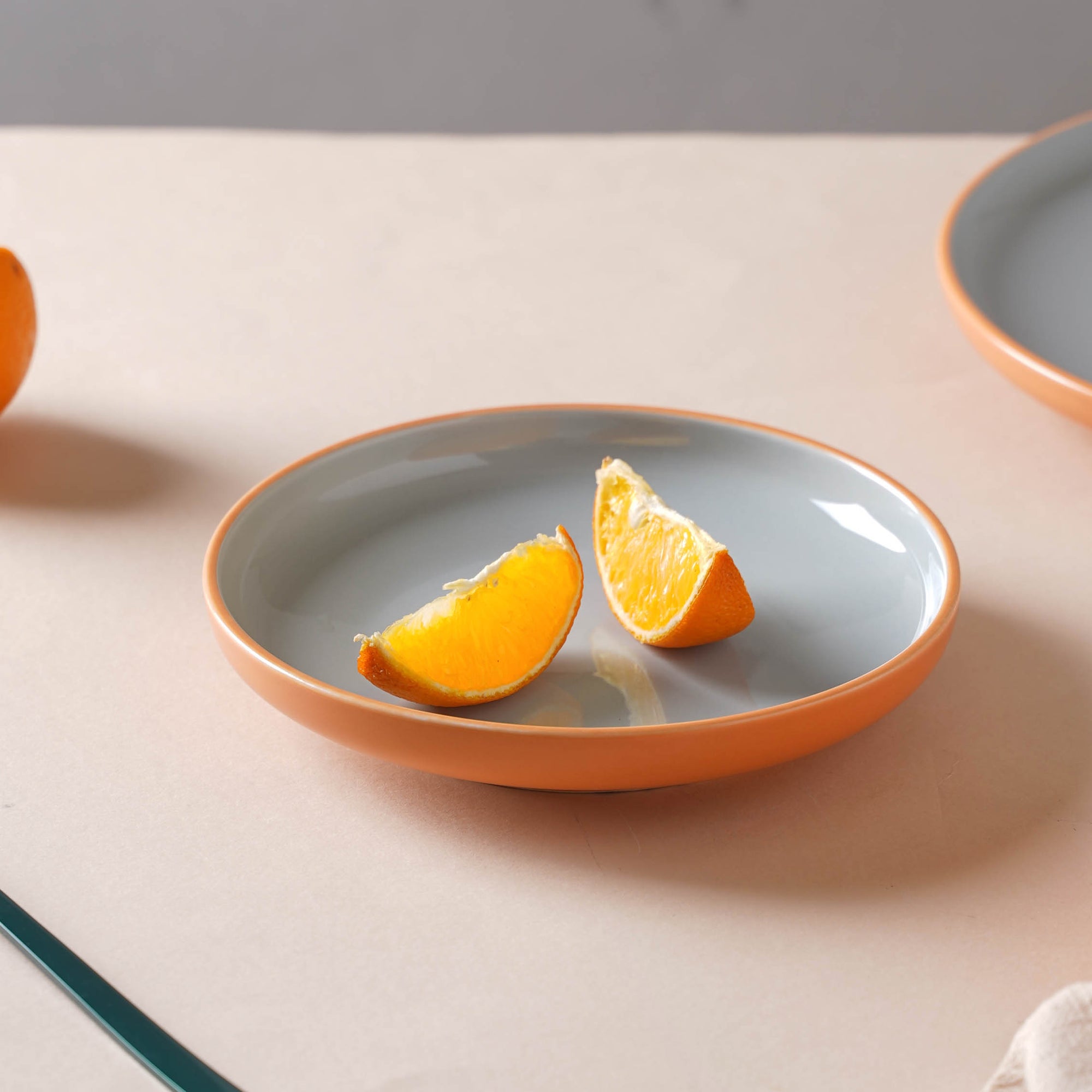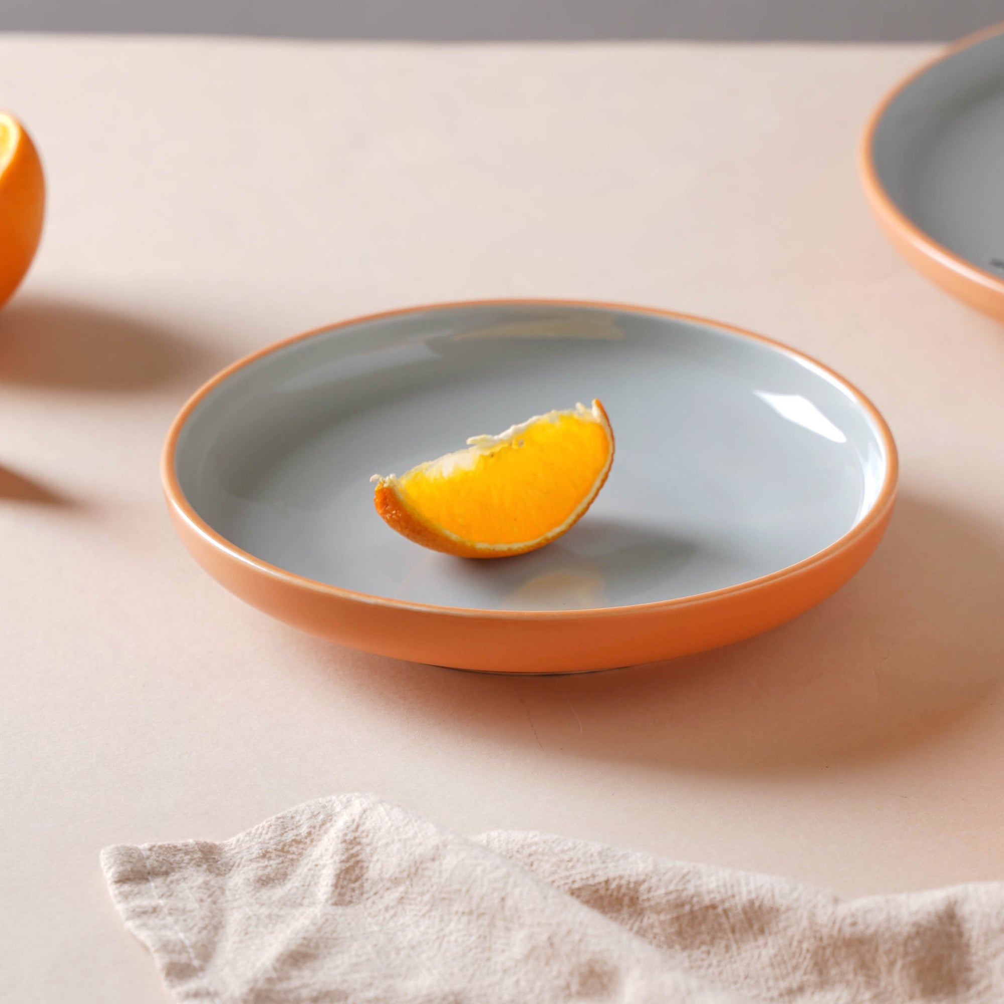 Snack plate in a beautiful tone which can be used to serve starters and snacks. The dual-toned ceramic snack plate can also be used as a breakfast plate or a fruit plate. The lovely color scheme of the ceramic plate is going to brighten up the atmosphere of the dining table.